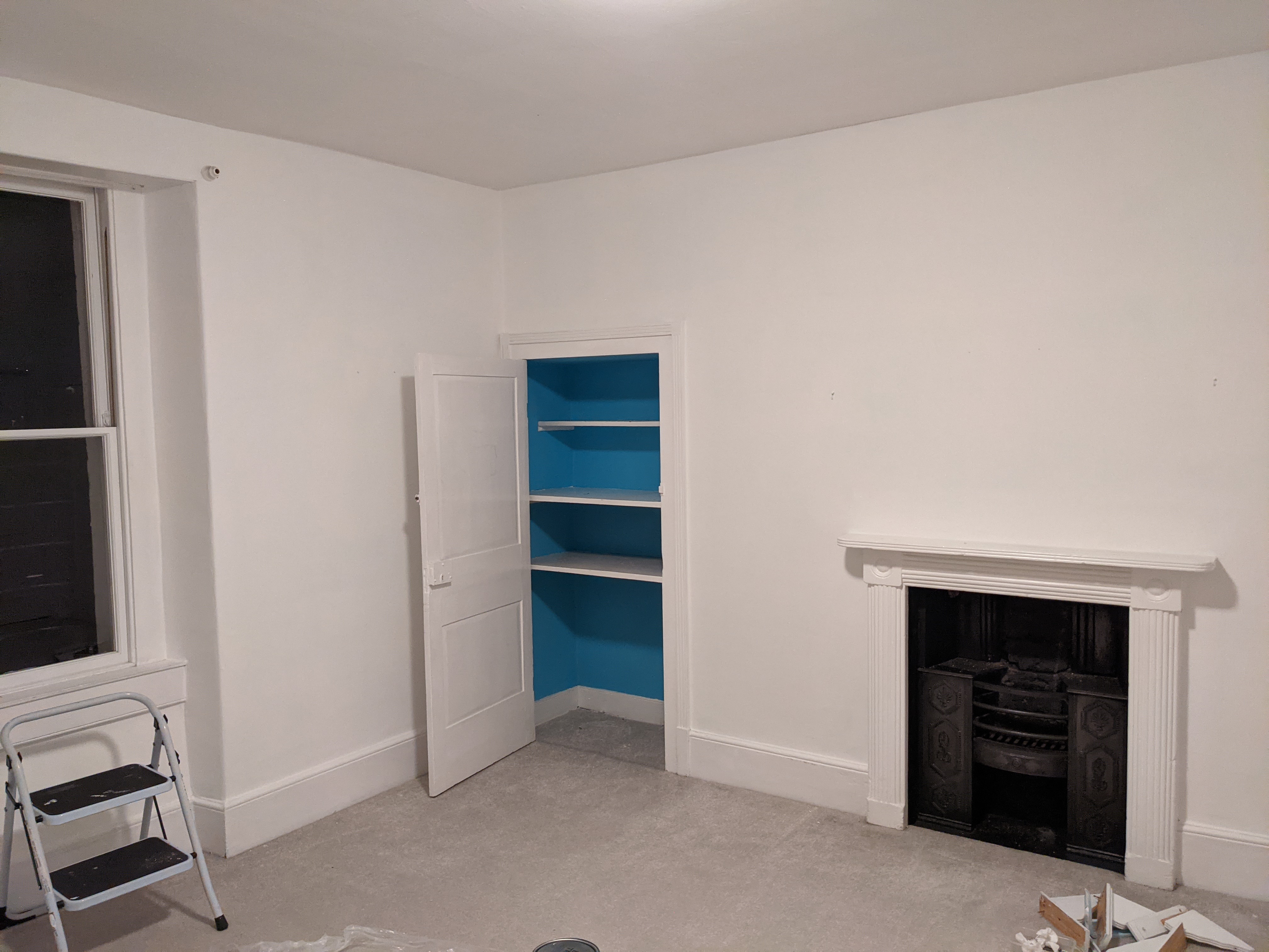 - Got most of the blue room sorted. It's now white with yellow curtains