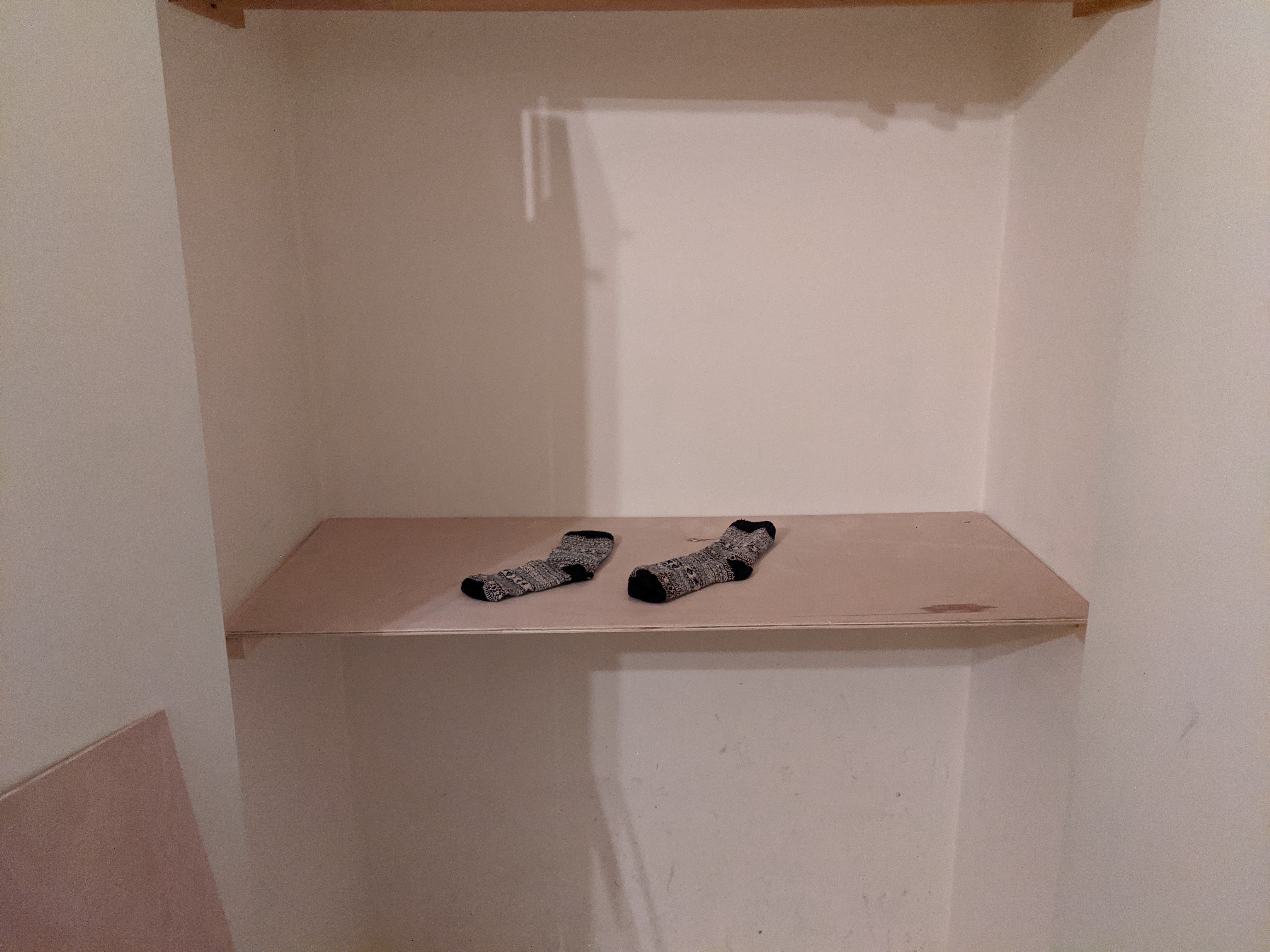 - Built some shelves for the cupboards in the master bedroom. This is Nikki load-testing the first shelf