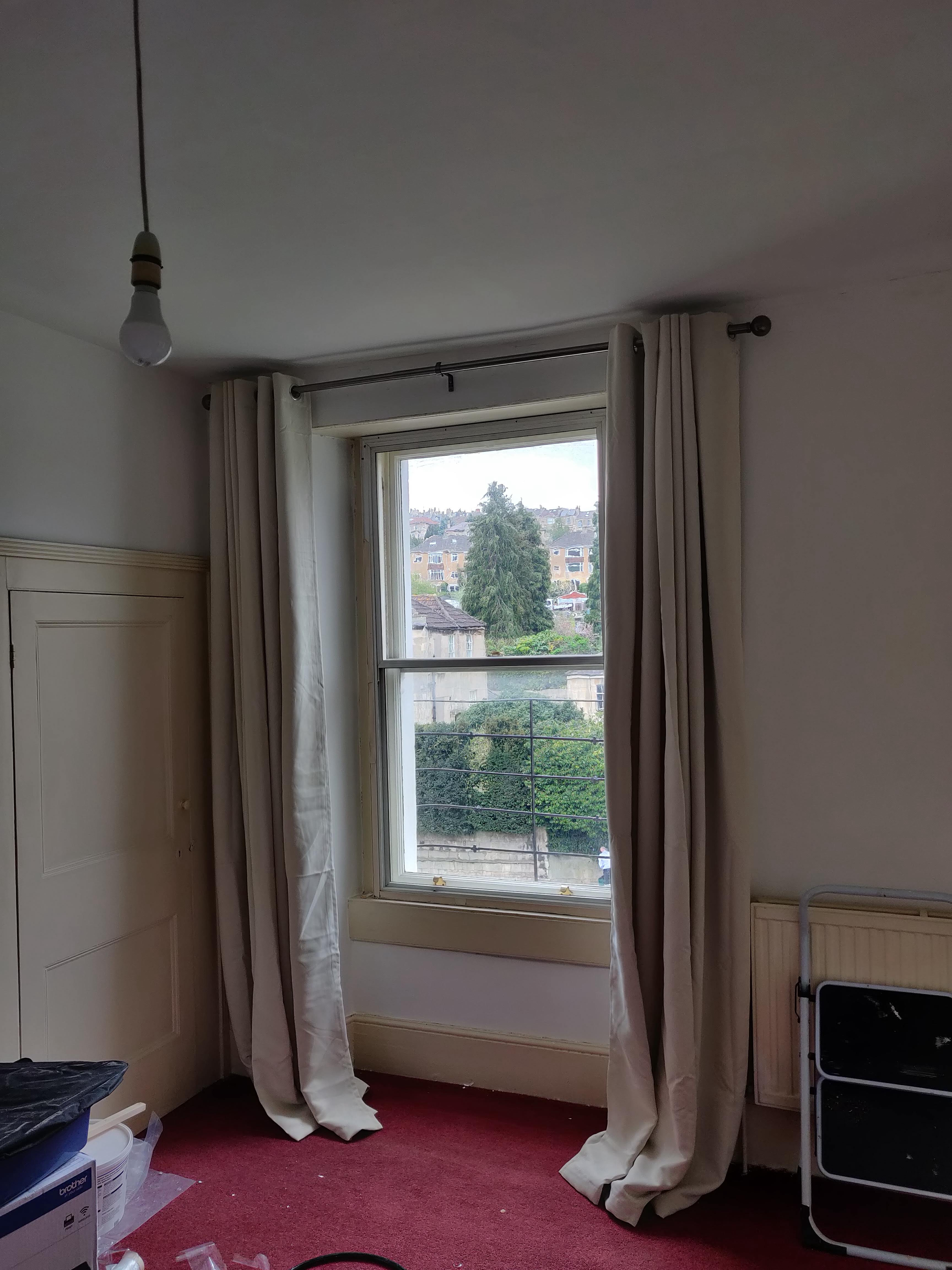The guest room now has a brand-spanking-new curtain pole and curtains. These curtains are temporary as we still have grand plans to do up the room properly (the carpet 🤮 ). The room definitely feels more welcoming with homely touches like a bed and some curtains. Maybe soon we'll even get a proper light fitting. Guests are so fussy ;)