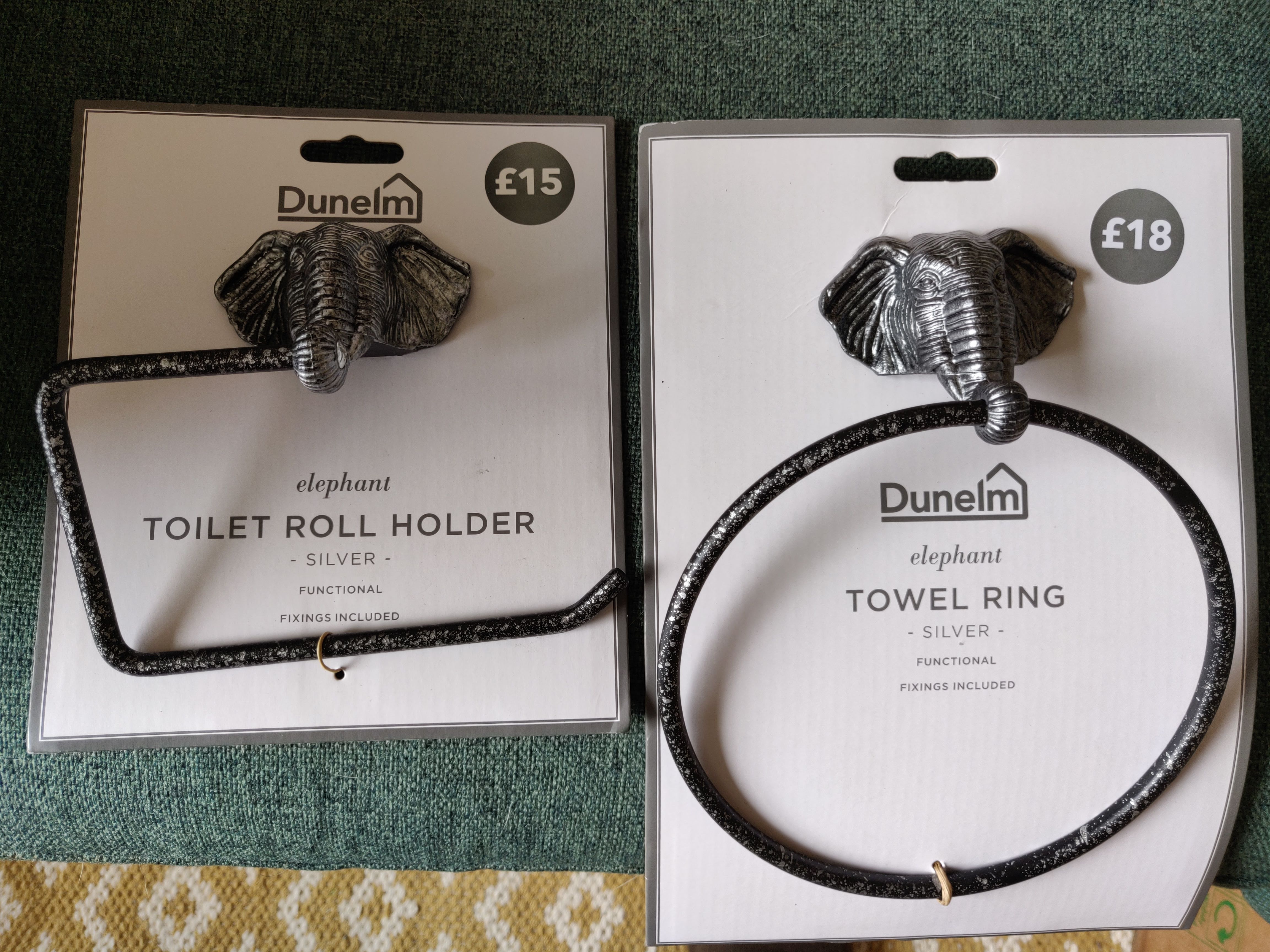 In other bathroom news, we thought we might tackle a more manageable bathroom project ourselves. The chilly toilet - which is much less chilly now that the radiator is actually radiating. We feel that the obvious theming for such a room is 🐘 Elephant 🐘, so we're going all in. Nothing's changed yet as we're still in the design-and-acquire stage but here's some of the fittings Nikki found.