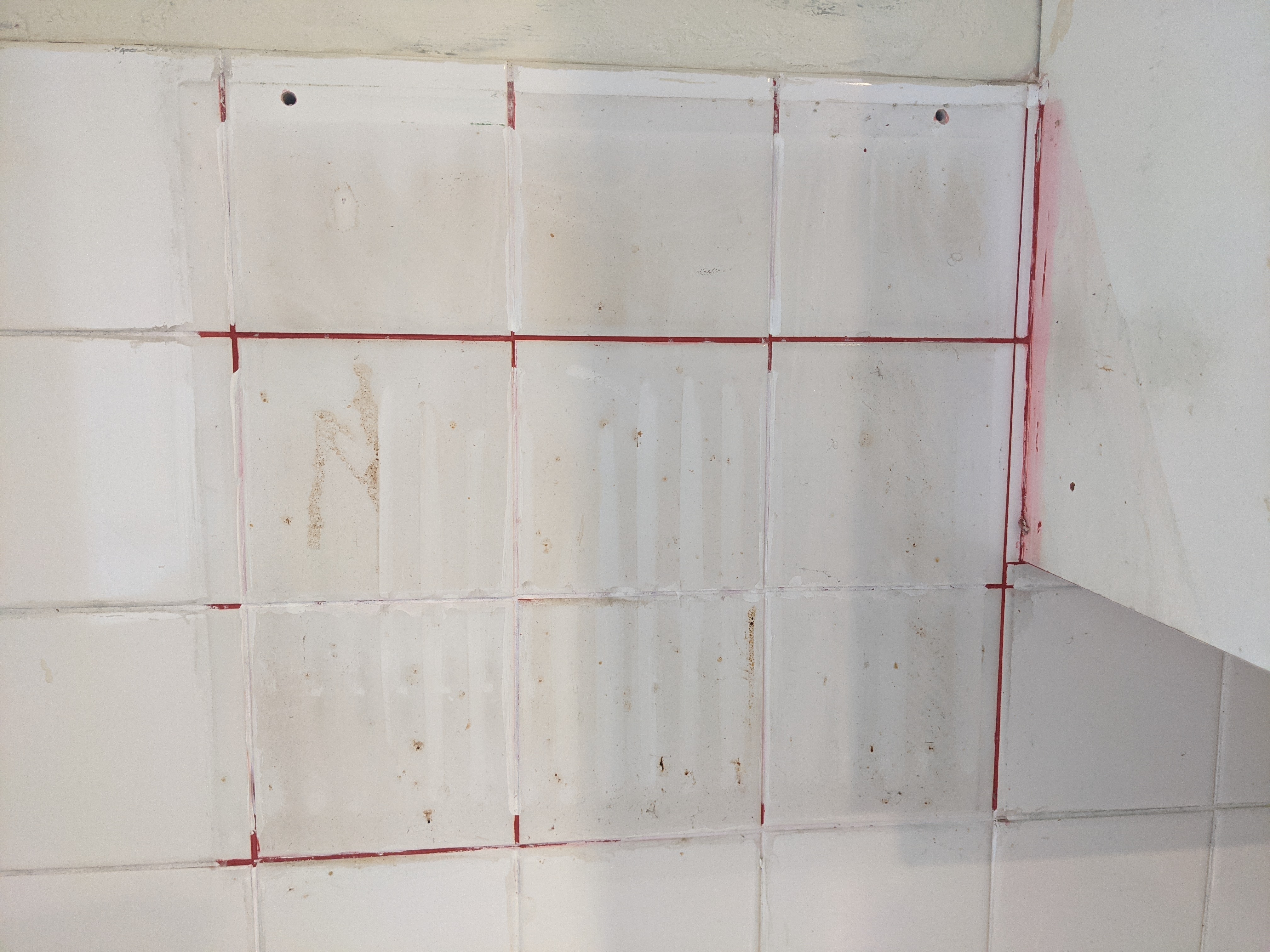 During the removal we found that the grout had previously been bright red! A very bold choice! I don't know if it ever coincided with the green of the units, but I choose to believe that it did :)