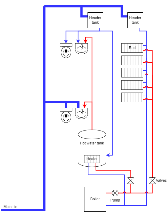 During the last update we had some professional plumbers round to remove the cold water header tanks from our system to bring us up to (nearly) mains pressure throughout the house, and replace the boiler and hot water cylinder while they were at it.