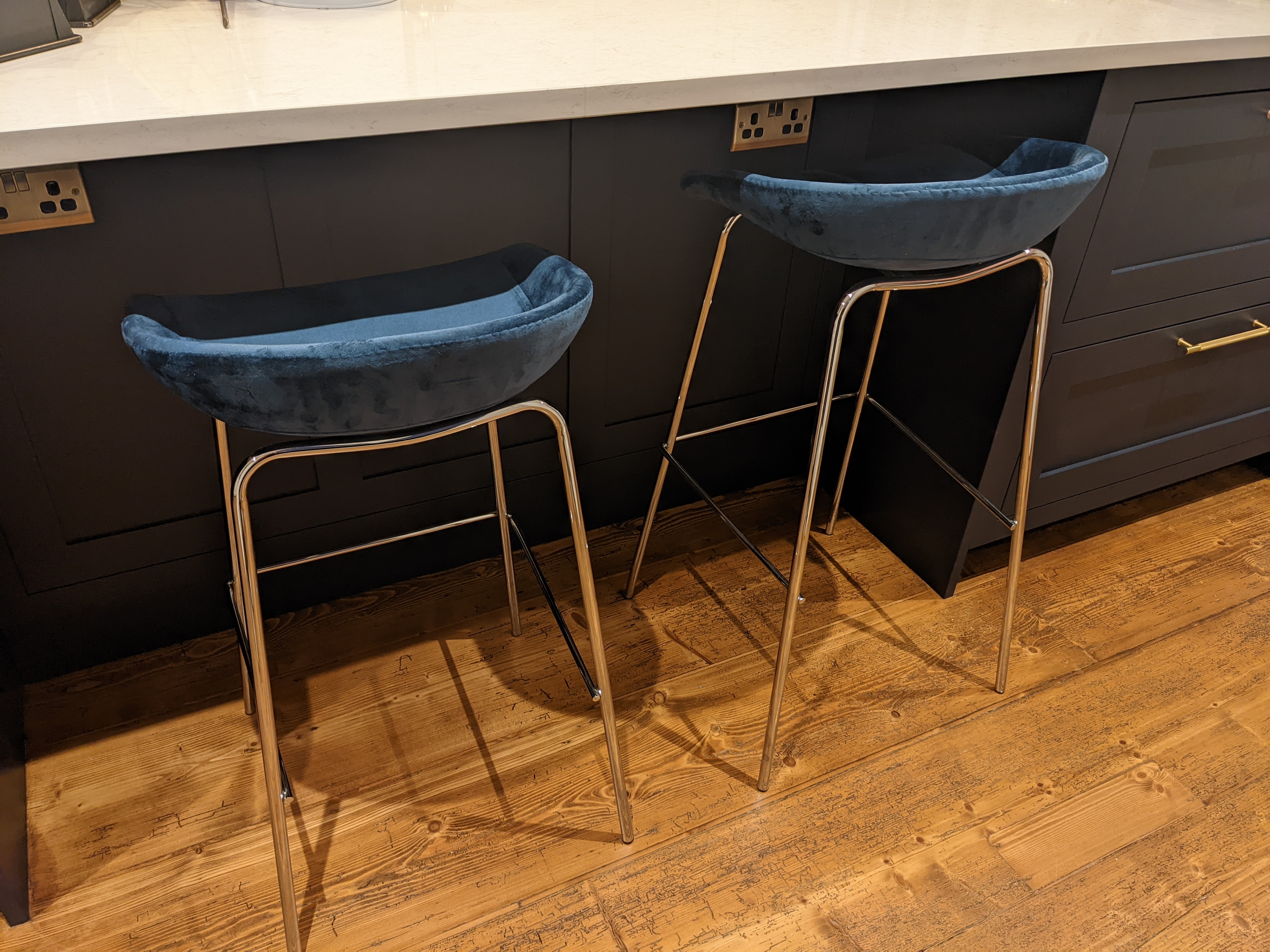 We discovered that it's really annoying to buy barstools. It seems to be an item that most physical shops don't stock many of, and they're big enough that buying them online and returning them is a pain. Eventually we caved and just bought some cheap ones online after failing to find any that we were happy with in person. They will need some more adjustment, but we're pretty pleased with them.