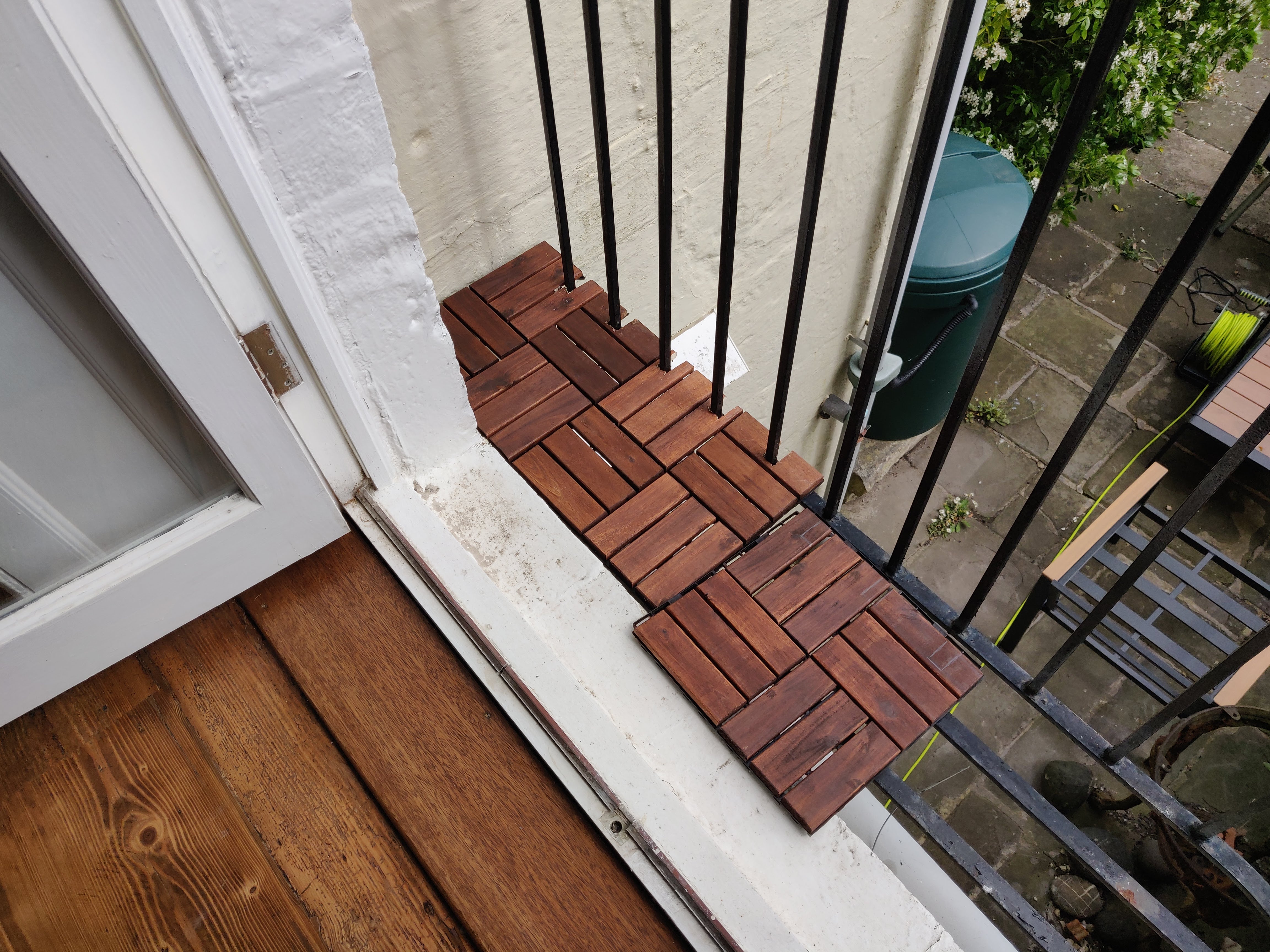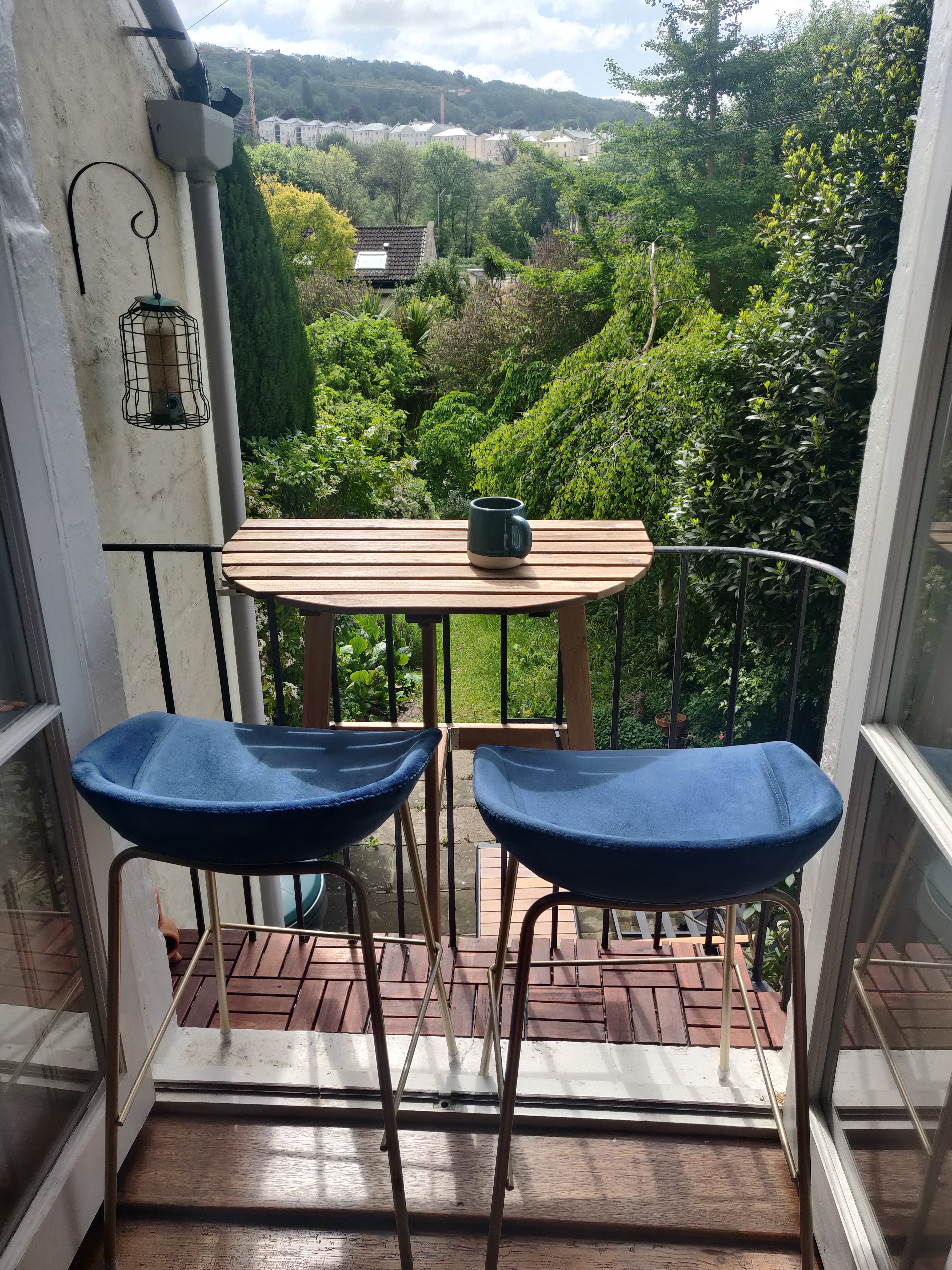 A quick little project we fancied was to create an outdoor balconette seating area, for coffee and toast on sunny days. IKEA's finest, cable ties, bam bam bam, sorted. We consider this done*, of course. (except that we plan to install some herb planters on the railings, and haven't yet worked out how best to fit them on.)