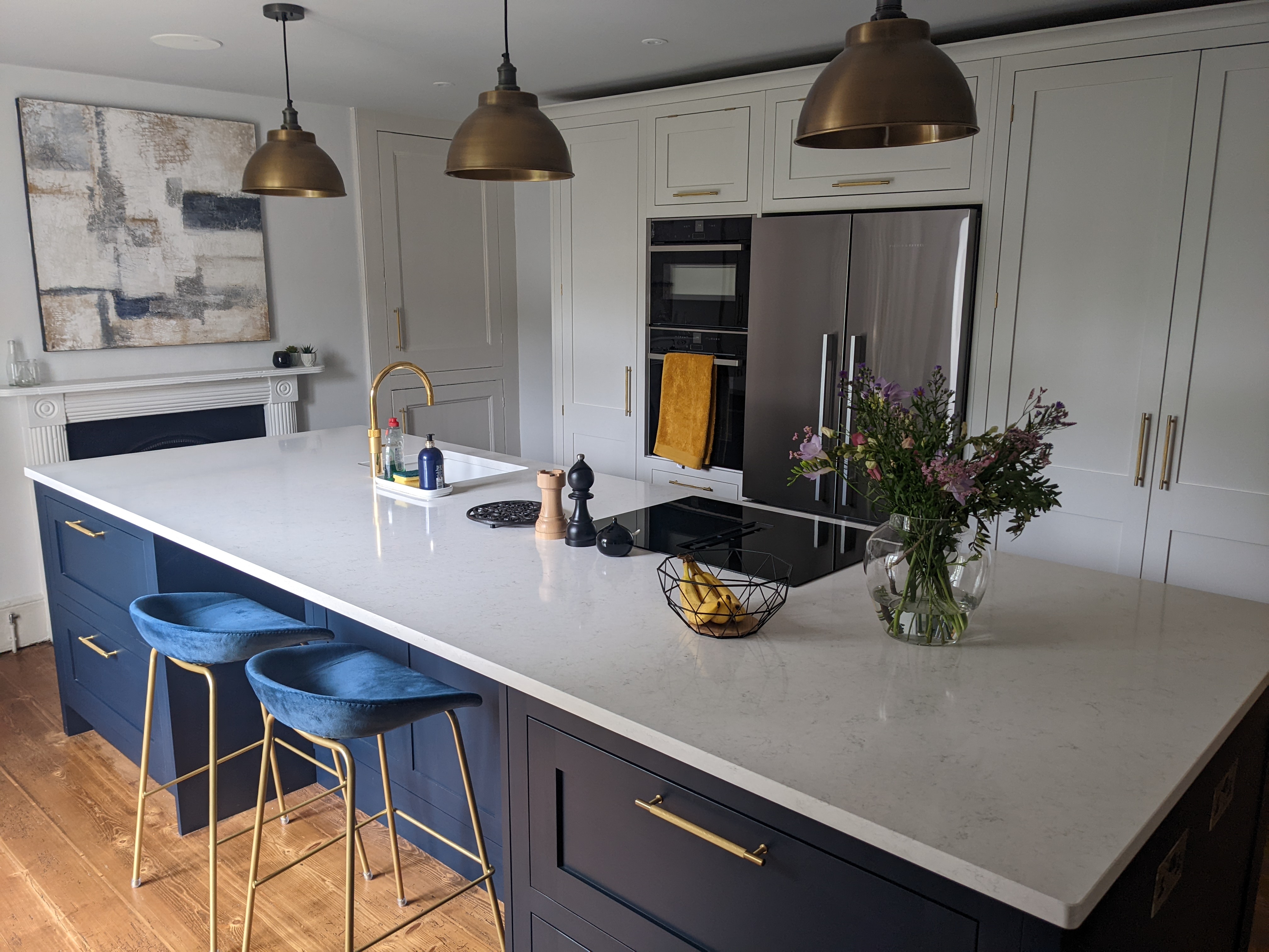 We got an unexpected call from our kitchen makers asking if they could book in a time to come and photograph our kitchen for their portfolio (a good sign I think ๐), and this gave Nikki the prod she needed to get around to painting the kitchen stool legs to match the โจblingโจ of everything else.