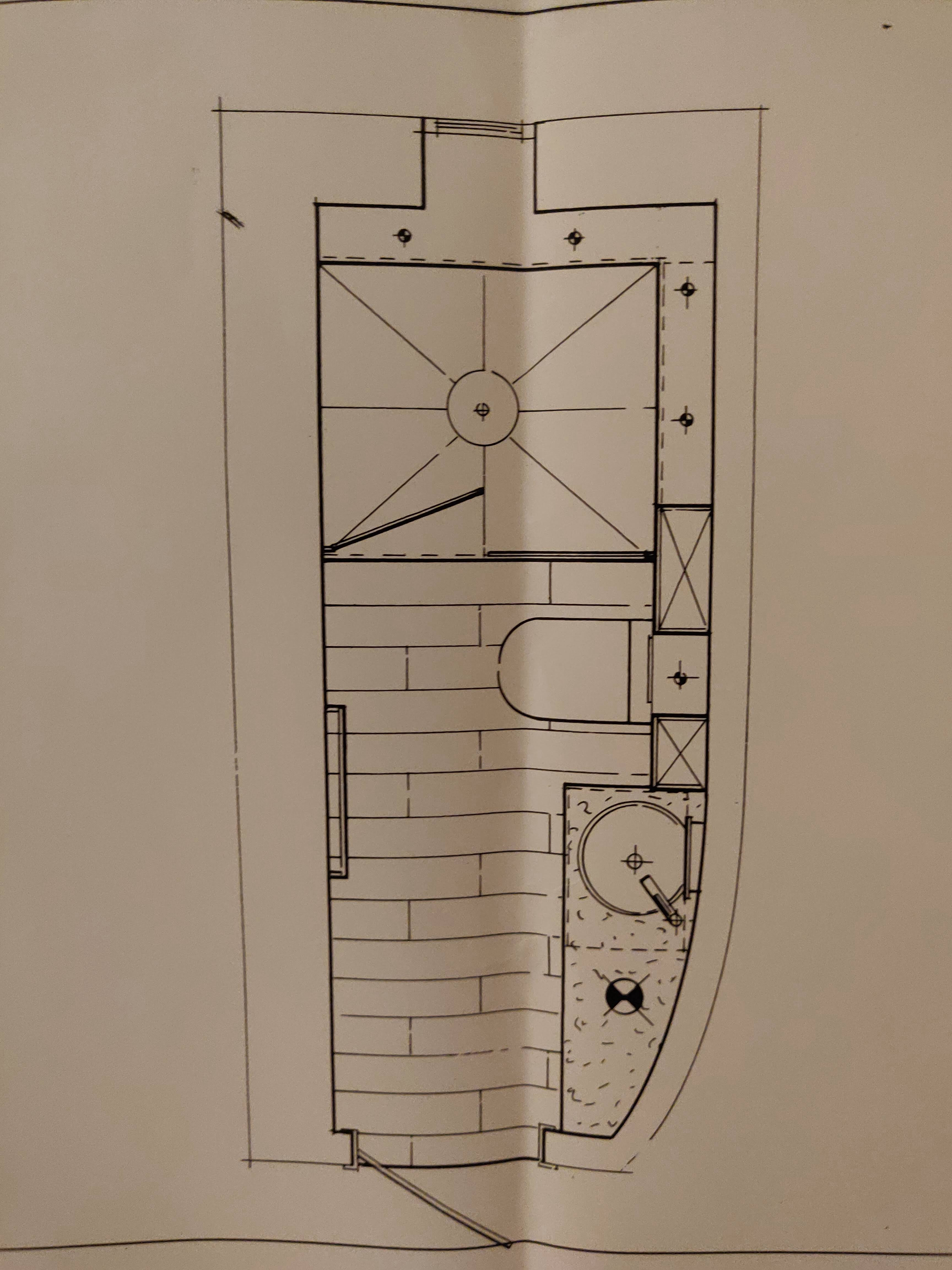 I don't think we've yet shared the design for the top floor bathroom on here. The main idea is that the shower will be at the back, and the toilet and sink on the wall in a line.