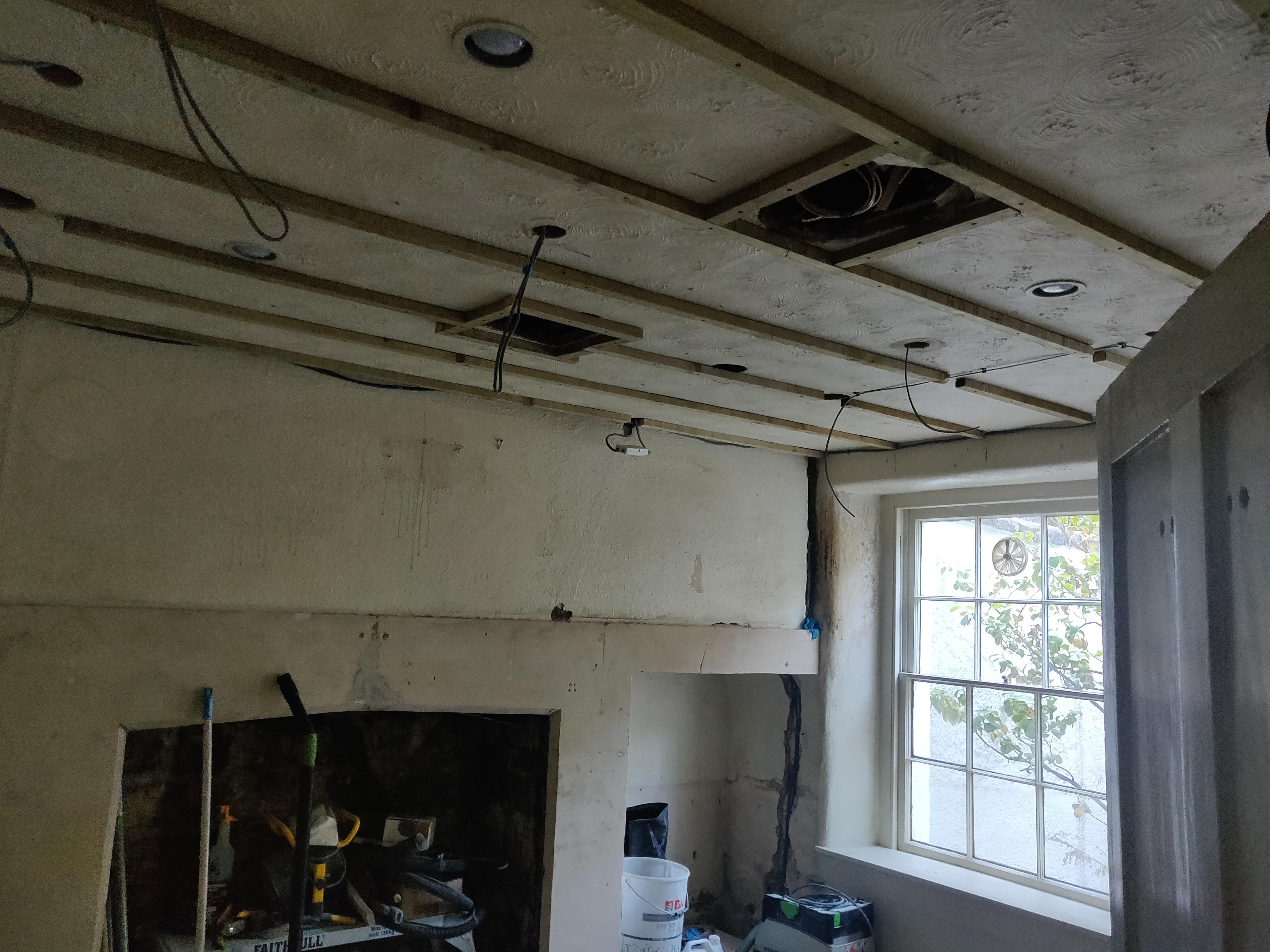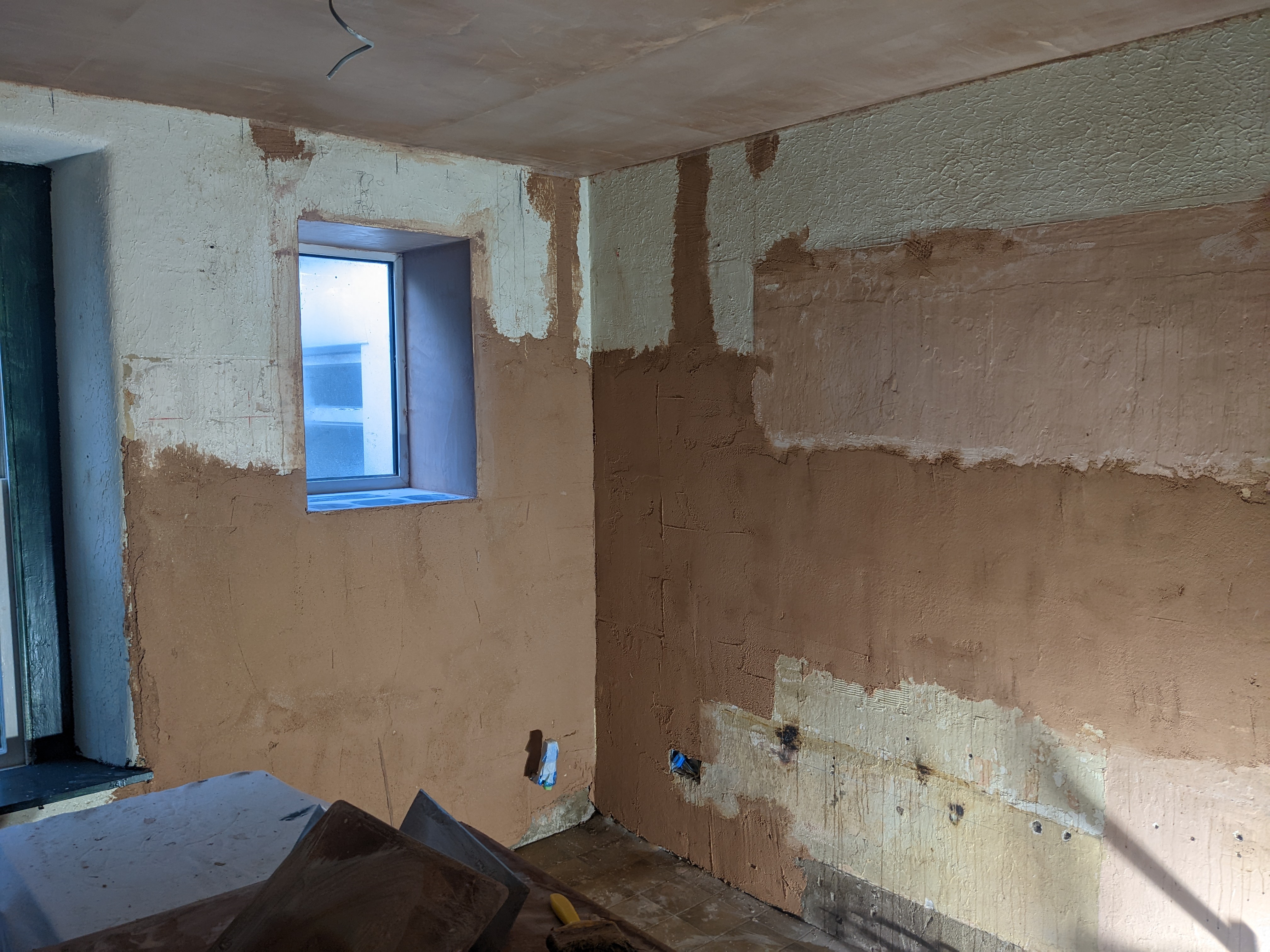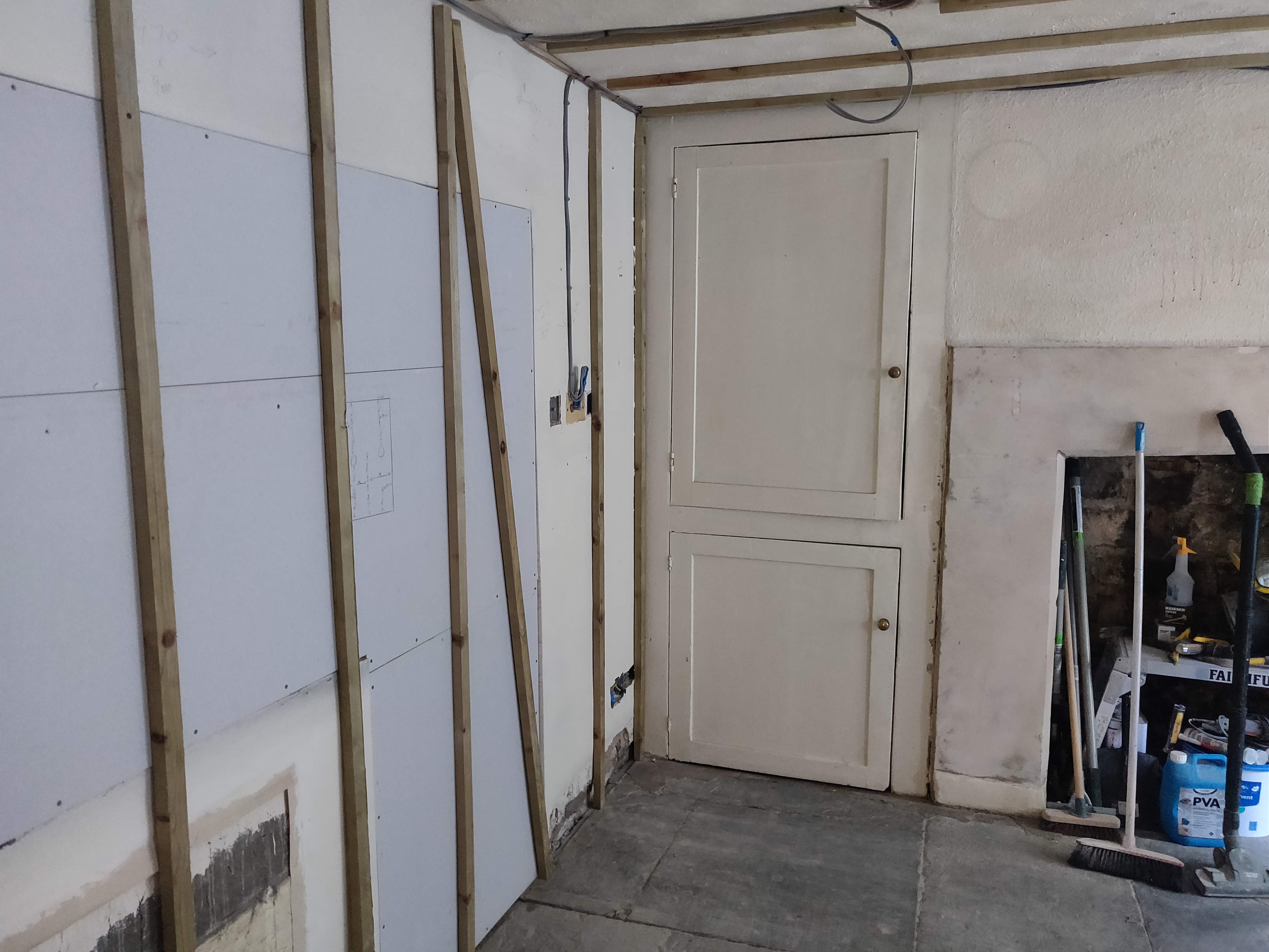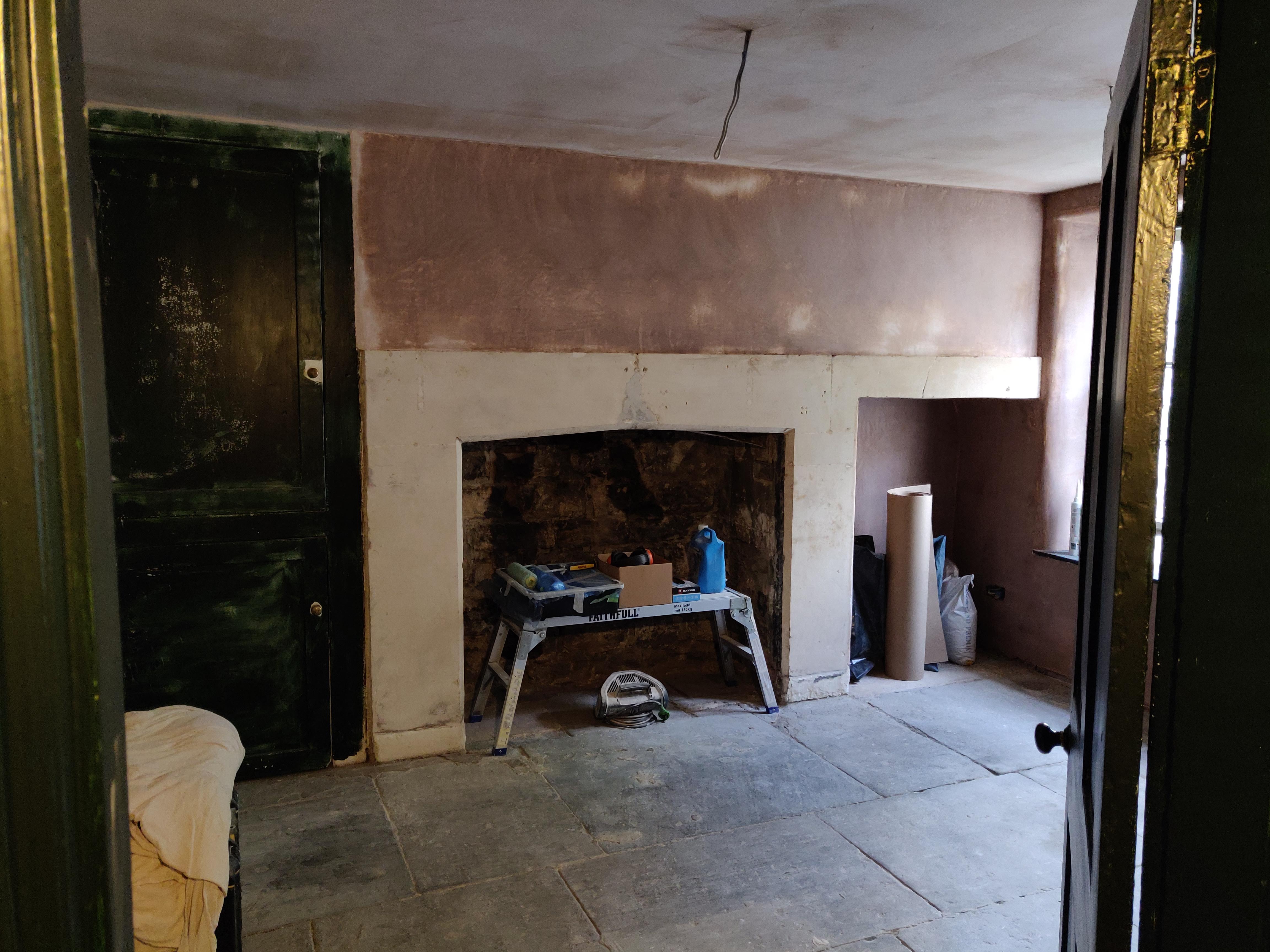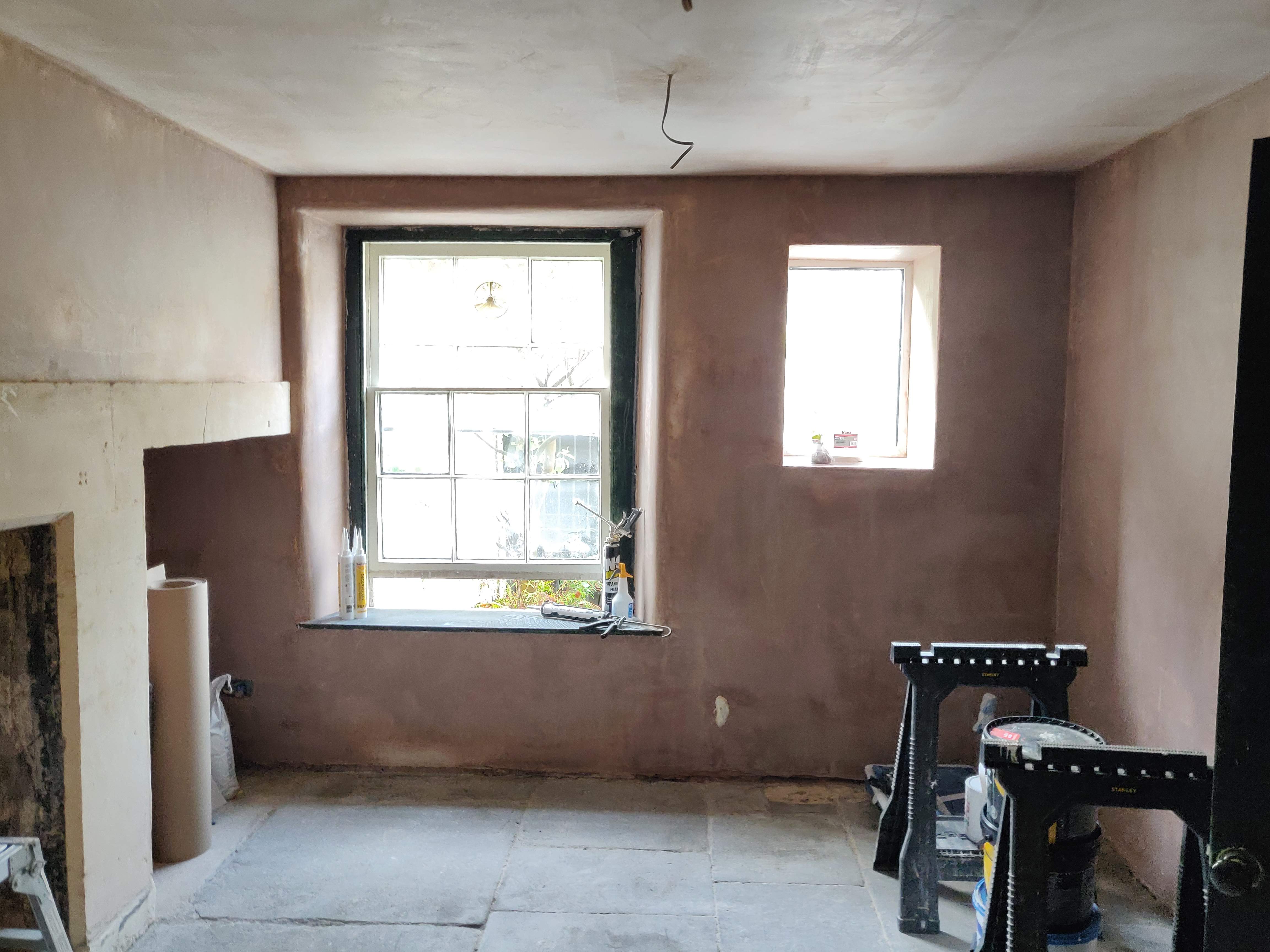 We can really see this room coming together after the plastering. It will soon be painted dark green to match the hallway, and should become a really cosy room. Looking forward to some dinner parties!