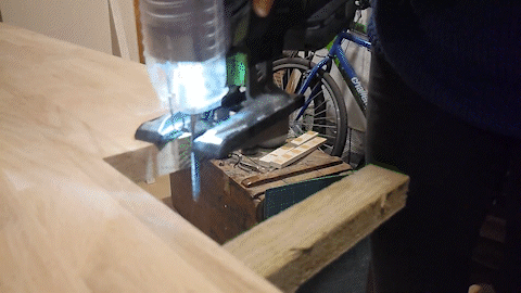 Jigsaw This one is good, but perhaps we don't quite understand it yet. The 'trigger' is an on-off button rather than something you have to continuously hold down. That's interesting, but it means that if you want to change the blade you need to remove the battery because otherwise it would be far too easy to accidentally turn it on. The blade itself has its own proprietary connection (boo!) which seems to just make it super awkward to attach. It's also got a built in light that strobes in time with the blade once it's at full speed, so that it looks like the blade isn't moving... We don't really get the point of that feature...