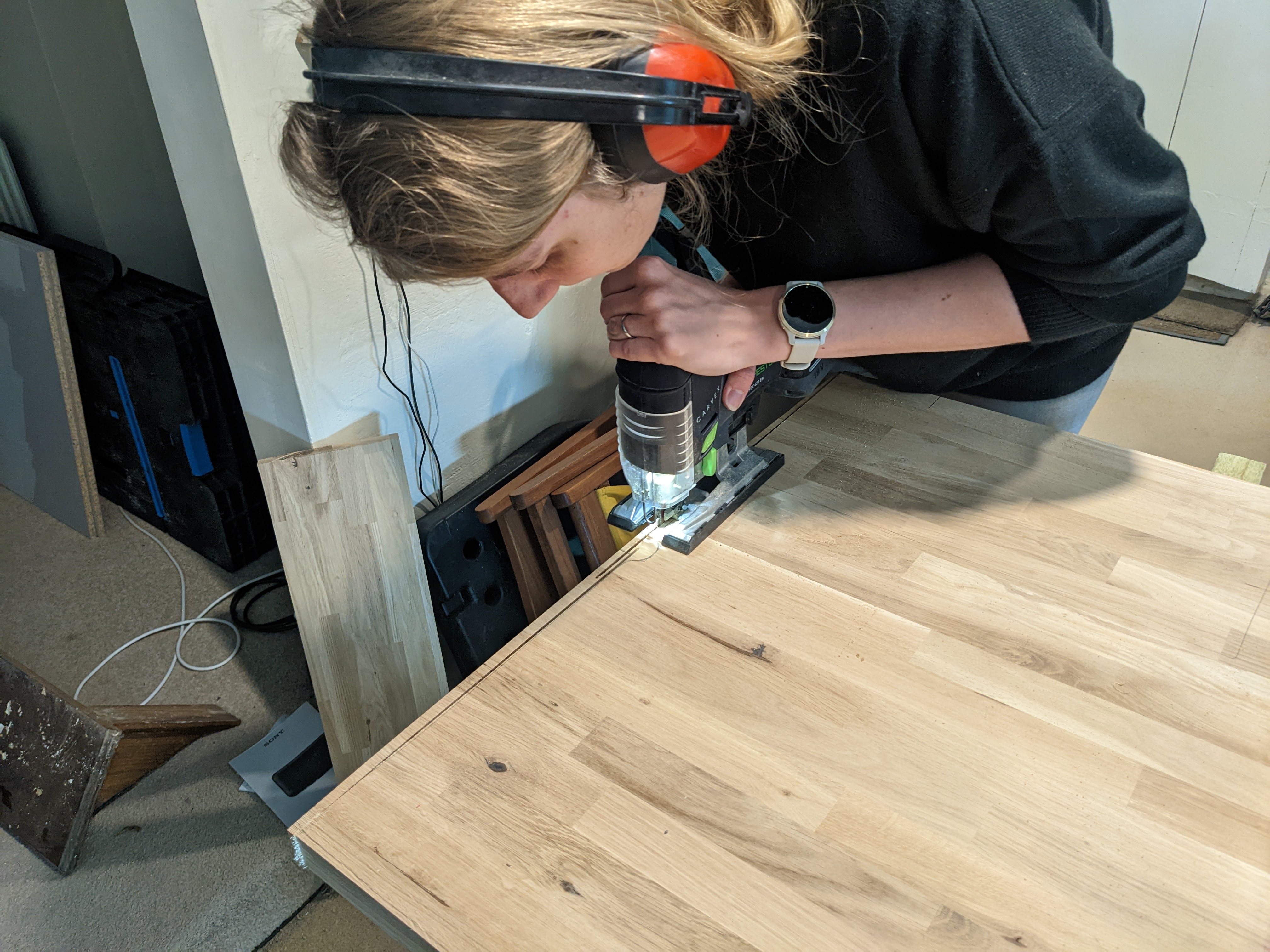 First we made a cardboard template of the worktop. This was a really really good idea.