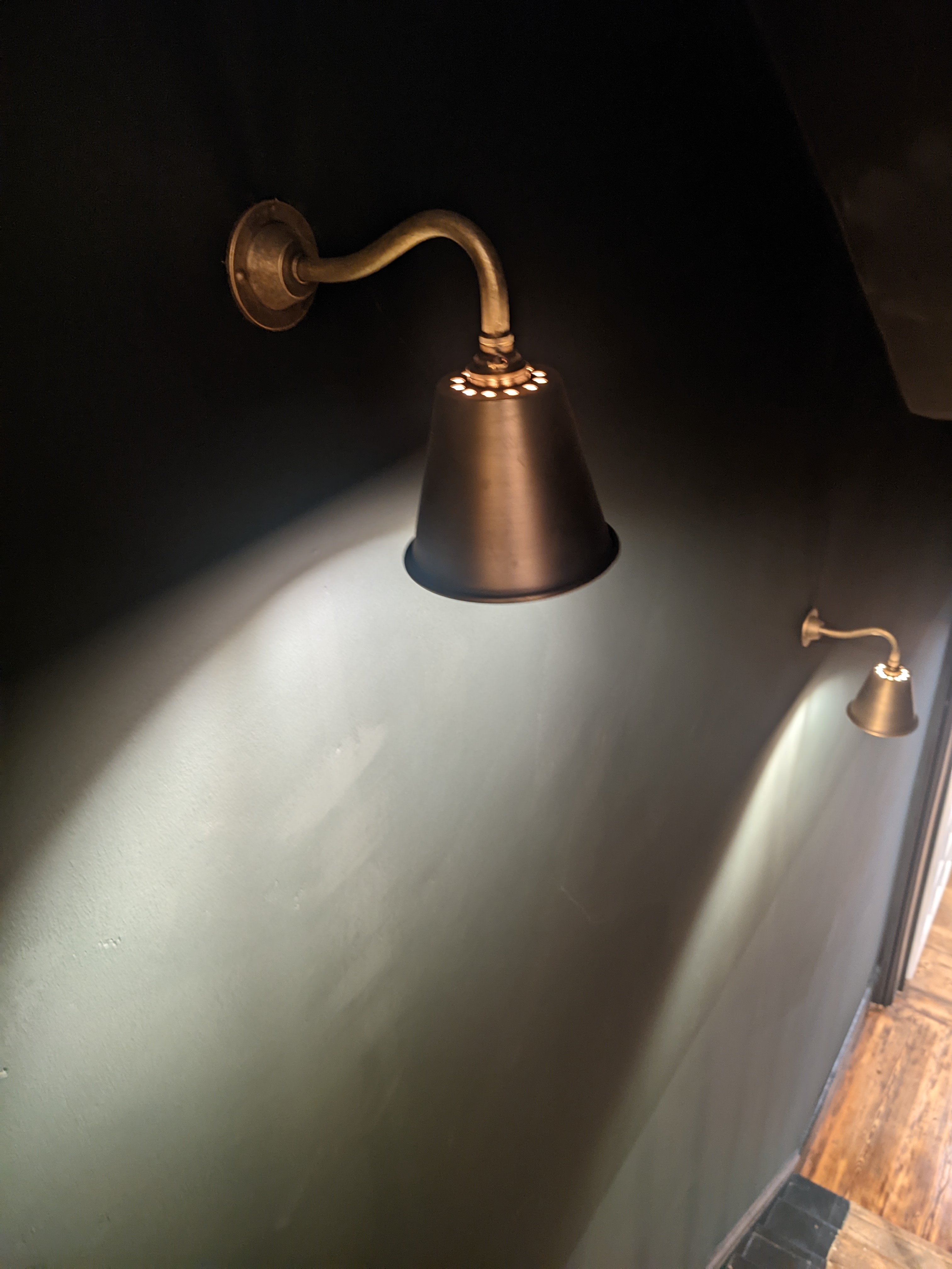 The wall lights have been installed, which we think look great (better than okayyyy).